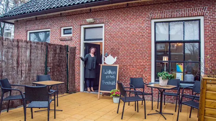 De monumentale kastanjeboom op het gazon lijkt te waken over de woning die Het Theehuis Sneek herbergt. Die boom bepaalt hun logo. ‘De symboliek past bij ons,’ vindt Mettelina. ‘Geworteld in de aarde, uitreikend naar boven.’ En daar, ergens tussen dood en leven, tussen hemel en aarde, is nu die fijne ontmoetingsplek gecreëerd waar in de eerste maanden al driehonderd bezoekers werden geturfd. Vrijwilligers kregen een training vooraf: hoe ga je met rouwende mensen om? Hoe kun je steun en troost bieden? ‘Maar,’ haast Ineke zich te zeggen, ‘het zijn gastvrouwen, geen therapeuten. Bij hen vind je een luisterend oor en kun je even opwarmen.’