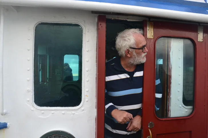 8.00 uur De motor staat te stampen in de machinekamer. Daarbovenuit klinkt de stem van organisator Martijn Bot van Birdingholland.nl, die aan dek tips geeft voor een succesvolle dag. ‘Roep het vooral als je een mooie soort denkt te zien,’ moedigt hij de passagiers aan. ‘Ook als je het niet zeker weet. Beter tien keer voor niets dan één keer gemist.’ We moeten trouwens niet alleen op vogels letten: ‘Zeehonden en bruinvissen doen ook mee.’