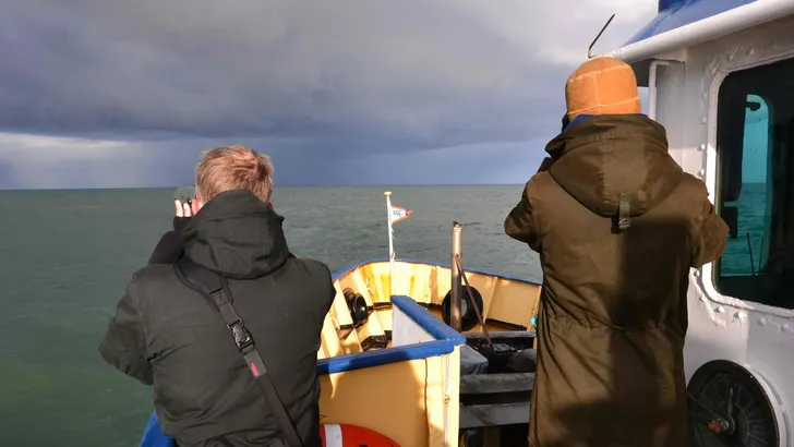 Dubbele lagen kleding, mutsen en verrekijkers: dat gaat in Lauwersoog mee aan boord. Een zeevogelexcursie is niks voor koukleumen zonder zeebenen. Maar wie het aandurft, wordt getrakteerd op de mooiste luchtacrobaten. ‘Daar komen de jan-van-genten!’