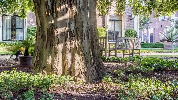 Ook deze tuin van het Sint Antoon, zoals de instelling in de volksmond genoemd wordt, heeft een enorme geschiedenis. Tuinarchitect Nico Kloppenborg vertelt: ‘De geschiedenis van de huidige tuin begint in 1857, het jaar waarin de voogden van het Anthony Gasthuis het herenhuis van de gezusters Van der Haer aan de Grote Kerkstraat kopen en enkele belendende huizen en tuinen. Achter het herenhuis is dan een min of meer L-vormige stadstuin aanwezig met een pleziertuin, een moestuin, een fruittuin met oranjerie en broeibakken. Bovendien staan er al twee grote beuken.’ Daarna zijn er diverse tuinstijlen geweest die elk bij hun eigen tijd hoorden. Het is interessant om te zien hoe men tot de huidige invulling is gekomen.