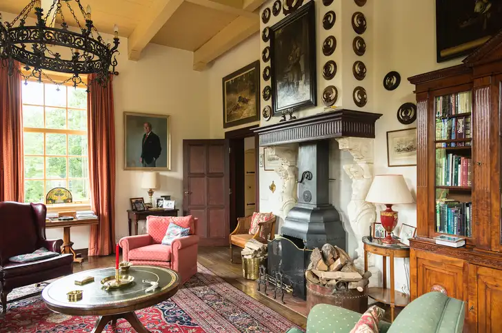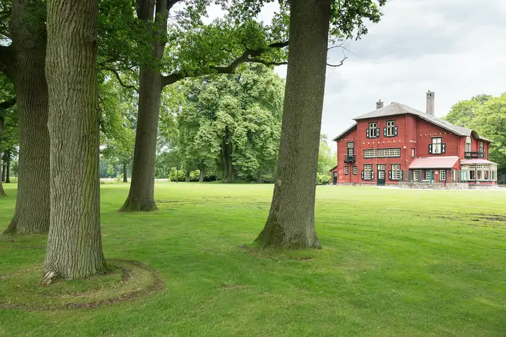 Bezoekers zijn nog altijd van harte welkom op De Eese, zij het voor een veel vriendelijker schouwspel van de natuur. Op gepaste afstand van bewoond privédomein mag iedereen van dit nationaal monument genieten. Dat is particulier eigendom. Het was de steenrijke Amsterdamse koffiehandelaar Onnes van Nijenrode die het landgoed in 1915 kocht en er zijn stempel op drukte in de vorm van drie karakteristieke gebouwen die nog altijd blikvangers zijn: het van rode Zweedse verf opgetrokken houten landhuis (dat nu 100 jaar bestaat), de paardenstal annex koetshuis en een dienstwoning voor de opzichter werden als bouwpakket uit Scandinavië gehaald. ‘Per schip naar Harlingen, met de trein naar Steenwijk, vandaar met paard en wagen naar De Eese en hier weer in elkaar gezet,’ vertelt Sybren Mulder.