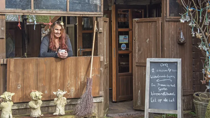 De dame in het zwart, vergezeld door twee grote honden, heeft voicemail en zit geregeld achter de laptop. Nee, ze heeft geen wrat op haar neus en reist, bij gebrek aan magisch transport, dikwijls met een busje. Margarita, “de heks van Appelscha”, etaleert de puntmuts en bezem alleen voor het klassieke fotomoment (altijd een hit bij kinderen!) en als uithangbord op de voorgevel: hier zit je goed.