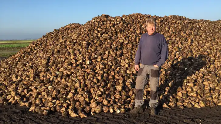 Met een blauwe stift is de kaart van Nederland aan de muur opgedeeld in genummerde vakken. In één oogopslag zie je het hele noordelijke bietenareaal: Noord- en Oost-Groningen, grote delen van Drenthe, de Friese kust. En Texel. ‘Dat is het enige gebied dat we nog per schip doen,’ vertelt Rik Gengler. ‘Vanuit Oudeschild naar Harlingen en dan over het Van Starkenborghkanaal.’ De kaart hangt op het kantoor van de agrarische dienst van Suiker Unie in Vierverlaten. Gengler is manager van deze afdeling, de bietenaanvoer valt onder zijn verantwoordelijkheid. ‘Globaal gaat alles boven de lijn Amsterdam-Arnhem hierheen, daaronder naar onze vestiging in Dinteloord.’