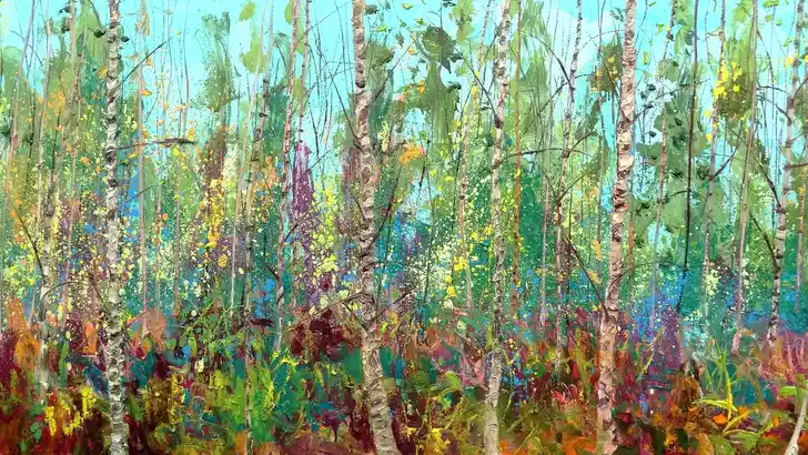 Hoewel bomen zijn werk domineren, komen er de laatste jaren ook panorama’s van het Hoge Land bij. Weilanden, dorpen en de zee lijken weliswaar meer natuurgetrouw geschilderd dan de, soms bijna fluorescerende, boomlandschappen maar worden volgens Scholte-Albers met hetzelfde gevoel gemaakt. `Dat gevoel is uiteindelijk een diep gevoel van ontzag voor de schepping. Als ik de verscheidenheid zie van die bomen, de dieren die ik hoor of zie dan overvalt me een soort huiver. Hoe oud is dit alles al, hoe vaak is het al niet lente geworden, herfst en winter? Dat gevoel is niet in woorden te vatten. Ik kan het alleen schilderen’, aldus Gertjan Scholte-Albers.
