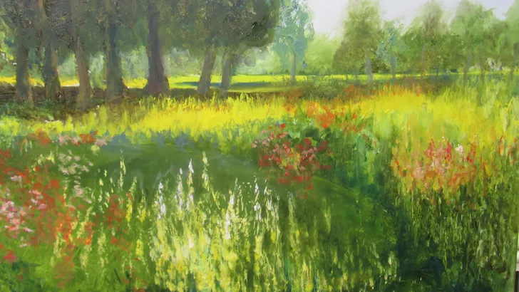 ⦁ Lonia Schölvinck (Norg) heeft zich de afgelopen periode gewijd aan het schilderen van haar eigen tuin en van fantasietuinen. Zo ontstonden sfeervolle schilderijen.