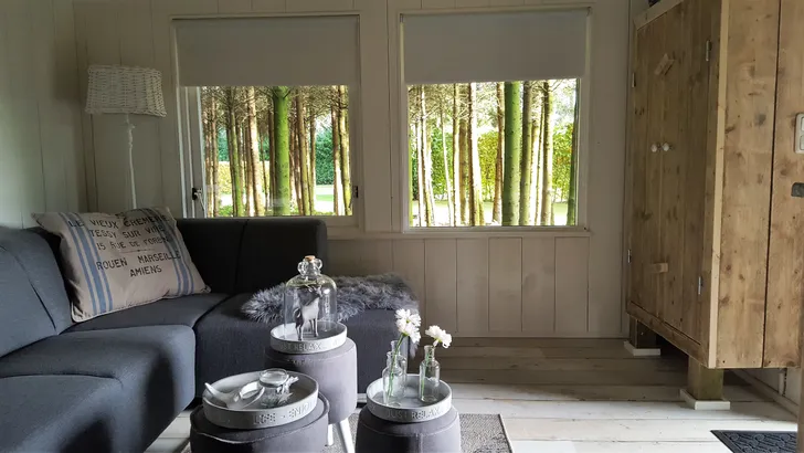 Om gasten de luxe van een hotel te geven met tóch dat ultieme buitenleven-gevoel, hebben Esther en haar man alles zelf ontworpen, gebouwd en ingericht. ‘Ik hou van mooi ingerichte huisjes, val daar gelijk op als ik ergens binnen kom. Door de bouw in eigen hand te nemen, konden we er ook ons eigen stempel op drukken. Gasten komen hier om echt te ontspannen, dus voor ons is het belangrijk dat ook het interieur daarop aansluit. Zo hoef je niet altijd de deur uit en kun je er ook eens lekker een boek bij pakken.’