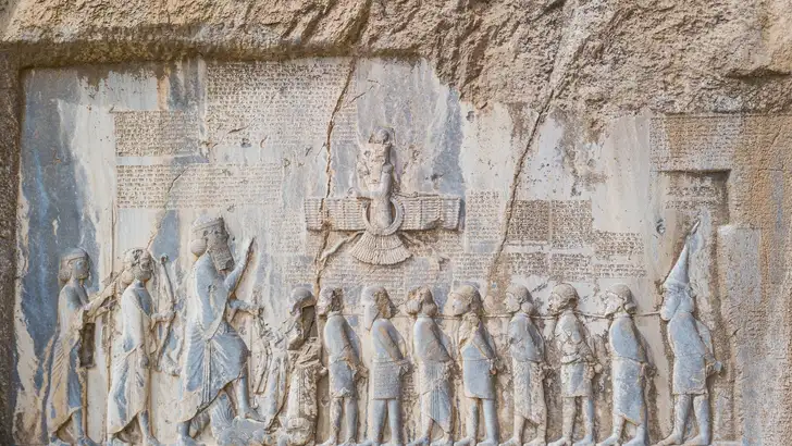 Tekst: Drents Museum | Beeld: Overwinningsreliëf van koning Darius I, ca. 520 v. Chr., Bisotun. / foto: Hans Avontuur