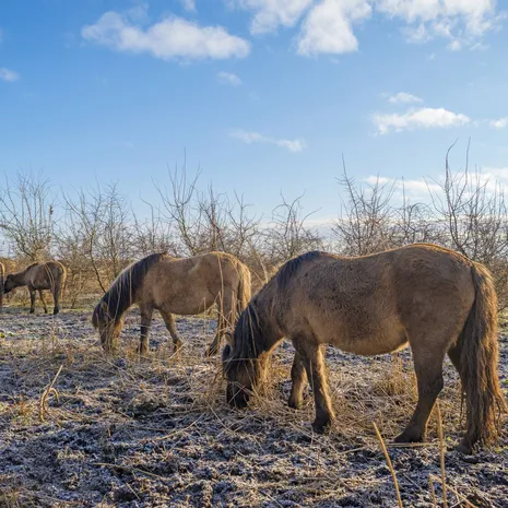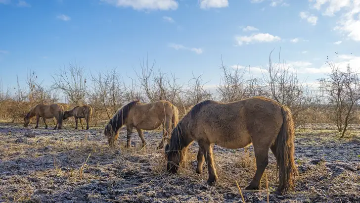 Het had eigenlijk al lang lente moeten zijn. Dat kon je goed zien aan mijn narcissen en de krokussen van de buren in het plantsoen bij ons voor de deur, “gekraakt” omdat de gemeente er toch niets mee doet; ze probeerden het wel, wat ze prompt met een vroege bevriezingsdood moesten bekopen. Maar opeens begon het als een gek te vriezen, met een venijnige oostenwind uit Rusland en zagen wij ons alsnog genoodzaakt de drie katten bij te voeren, geheel tegen mijn principes en de natuur in. Toen waren wij toevallig in Flevoland. Helemaal naar afgereisd. Het rumoer om het al dan niet bijvoeren van de quasi-wilde dieren in de Oostvaarders-plassen, die daar liggen, was niet helemaal aan ons voorbij gegaan, maar we hadden natuurlijk geen baal hooi in de kofferbak. Net gestofzuigd. In de krant lazen we – kort door de bocht – dat het eigenlijk de schuld is van een oud-staatssecretaris, Bleker, die de wild-corridor torpedeerde die gepland was tussen de Oostvaardersplassen, het Horsterwold, via de Veluwe helemaal tot in het Duitse Reichswald. Als dat überwildviaduct er was gekomen, hadden die hongerlijders uit de Oostvaardersplassen in Duitsland kunnen gaan eten, was de gedachte. Daarmee ging men dan gemakshalve voorbij aan het feit dat zo’n corridor ook een soort rode loper is voor de wolf, de andere kant op dus. Die komen elkaar onvermijdelijk tegen en dat wordt knokken.