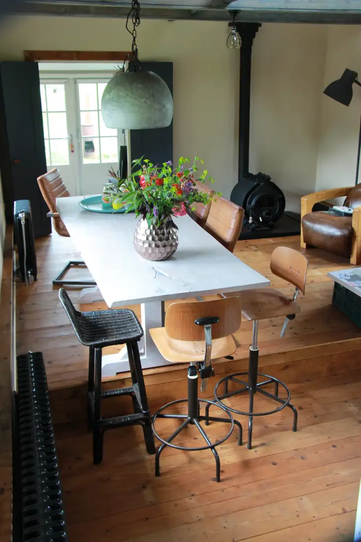 Neem plaats aan de eikenhouten tafel, draai de gietijzeren radiatoren open of steek de houtkachel aan, pak er een lekker boek bij. ‘Het Westerkerkje is van alle gemakken voorzien: alle keukengerei, maar ook leesvoer en spelletjes. Mensen voelen zich hier echt thuis.’