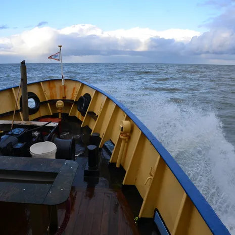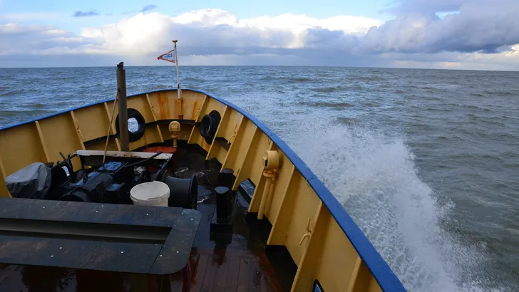 7.30 uur De kaarsrechte weg door de klei is donker en stil. Het Hoogeland ligt nog te slapen. Achter de akkers gloort industrie aan de horizon: de haven van Lauwersoog, vol in bedrijf. Want aan wal ligt de Dageraad te wachten, met 50 passagiers en klaar voor een volle dag op zee. Snel aan boord en dan gaat de loopplank al omhoog.