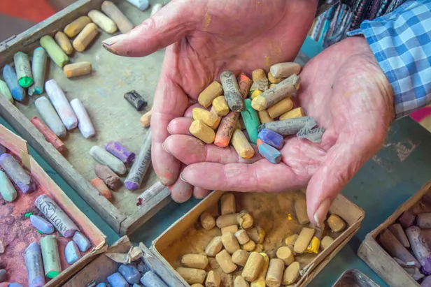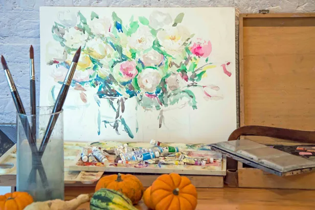 Alom aanwezig is het licht, ‘de essentie van alles.’ Dat licht te vangen met krijt of kwast (‘één streepje mis en je kunt opnieuw beginnen, daarom roept aquarelleren zoveel spanning bij me op’), dat is het hoogst haalbare. Kijken, zoeken, luisteren met je ogen naar het wezen van de bloem en dan iets creëren zoals-ie dat ook in de tuin doet. Dan verrijzen heerlijke stillevens, bont en vol, rijkgeschakeerd in een overvloed aan tinten.