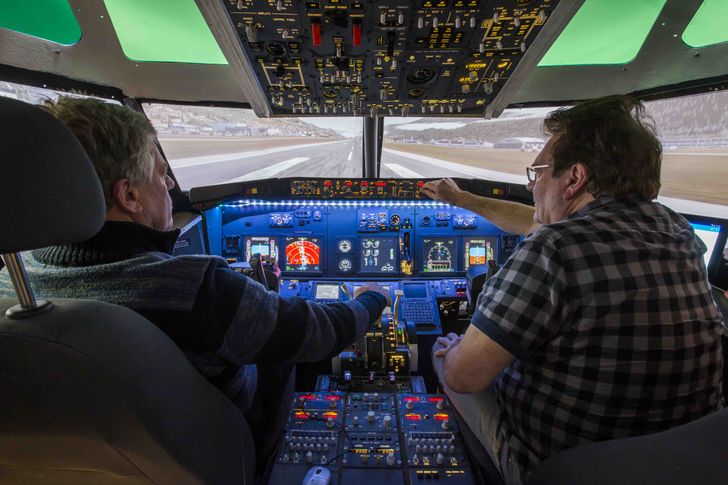 De cockpits van Tjebbe en René zijn vrijwel identiek aan die van de echte Boeing 737. Ze bouwden er ruim tien jaar aan. Alleen de zogeheten buttkicker ontbreekt nog. ‘Je voelt daardoor het plofje van de landing niet bij je kont,’ legt René uit. Heel problematisch is dat niet voor hem. ‘Ik vertaal het beeld van mijn hersenen naar mijn kont en dan ervaar ik bij een landing precies hetzelfde gevoel.’ ‘Je kunt er ook speciale kussentjes voor kopen. Ik ken zelfs iemand die een schuurmachine onder de stoel heeft gemonteerd om het juiste effect te bereiken,’ vult Tjebbe aan. Tjebbe droomde er als jongen eigenlijk nooit van om piloot te worden. Liever was hij buiten, werkte hij als boer in Haskerdijken tussen de dieren. Toch raakte hij zo’n tien jaar geleden in de ban van de cockpit en het besturen van een vliegtuig. Het begon met alleen een joystick en een flight simulator en eindige met een echte cockpit, die hij samen met zijn toenmalige buurman René bouwde. ‘Een dure hobby is het wel, maar het gaat in etappes,’ zegt Tjebbe. ‘Je koopt er steeds een onderdeel bij, totdat je uiteindelijk je replica compleet hebt.’