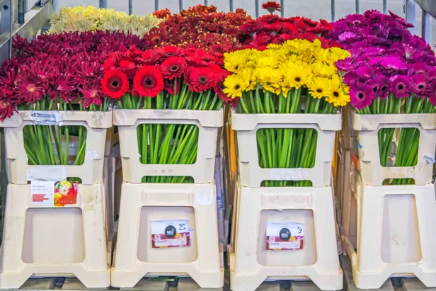 ‘Kijk, hier begint het,’ wijst Jeanne. Vanaf vier uur is het al business as usual in de distributie. De aanvoer van verse waar is dan weer in volle gang. Alles moet op z’n plek voor een nieuwe veildag. Elektrisch aangedreven “locs” met hele ritsen wagonnetjes erachter rijden letterlijk karrenvrachten vol snijbloemen, tuin- en kamerplanten naar hun plek van bestemming. Zodra de veiling start zoeven ze over hun eigen magneetbaan richting klok 1, 2 of 3 en na gedane zaken terug, voor de vervolgstappen van een ingenieus logistiek proces.