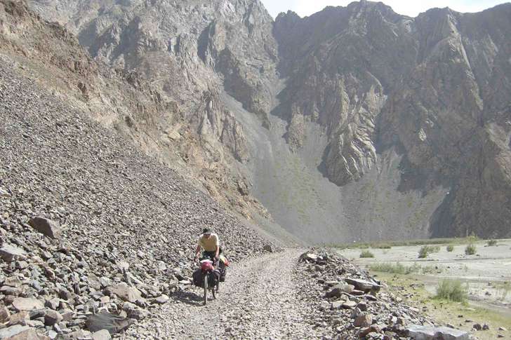 Drinken uit een beekje, af en toe een kouwe cola scoren. Eten voor een habbekrats, in aftandse straattentjes of bij de locals thuis, zelf een simpel potje koken. Terend op eigen fysieke en mentale ervaringen trekt hij langs bergketens en dorre pampa’s, door groene valleien, tussen vruchtbare rijstvelden, in woestijnen trillend van hitte, midden in de jungle. The middle of nowhere is een tijdelijk thuis. Soms moest Frank er de ratten en kakkerlakken trotseren, of de bush in voor de toiletgang. Pedaleren zonder asfalt. Het is heus niet al goud wat er blinkt over de grens. Frank maakte doodsmakken op de fiets, was hondsberoerd van de malaria en de salmonellavergiftiging, raakte gegijzeld, belaagd en in Burkina Faso beroofd door bandieten met kapmessen, zijn tent stond in brand. Op de heetste plek van Amerika (‘52 graden in de schaduw’) scheurde zijn waterbidon en wachtte hem uiteindelijk, uitgedroogd en verzwakt, hulp op een autoweg. ‘Ja, ik heb mijn benauwde momenten gekend, maar ben nooit gestopt.’