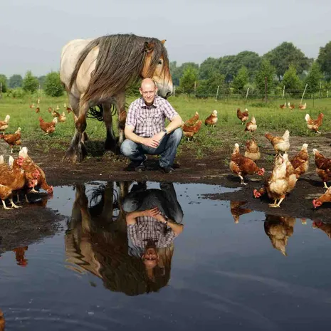 'Ik vond de boerderij altijd al prachtig. Na school racete ik meteen naar een bedrijf in de buurt om mee te helpen,’ vertelt Hendrik-Jan Kieft. ‘Maar boer worden? Dat zou wel niet zo makkelijk gaan. Ik was immers geen boerenzoon.’ Toch keerde de droom van een boerenbestaan telkens terug, en na de middelbare school begon Hendrik-Jan aan de Hogere Landbouwschool in Winsum. Hij kwam uiteindelijk terecht bij de ABN Amro als agrarisch adviseur. ‘Een mooie baan, waar ik heel veel leerde. Maar toch. Tóch bleef het kriebelen.’