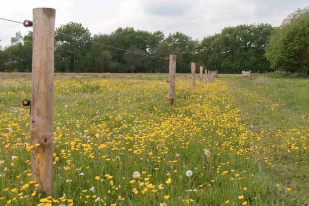 Het bewoonde ooievaarsnest, even verderop, is een plaatje. In de nok van het circus zitten de jongen al vol in het verenkleed en volwassen steltlopers doen zich tussen het groen op de “parterre” tegoed aan wormpjes, insecten en steviger kost. Wat een wereld. We stappen zo de zomer in, tussen uitgebloeide hagen fluitenkruid, met links kaarsrechte landbouwakkers waar het maïs al omhoog schiet en rechts de luwte van de bosrand. De zon heeft er vrij spel. Dat belooft straks een rijke bramenoogst.