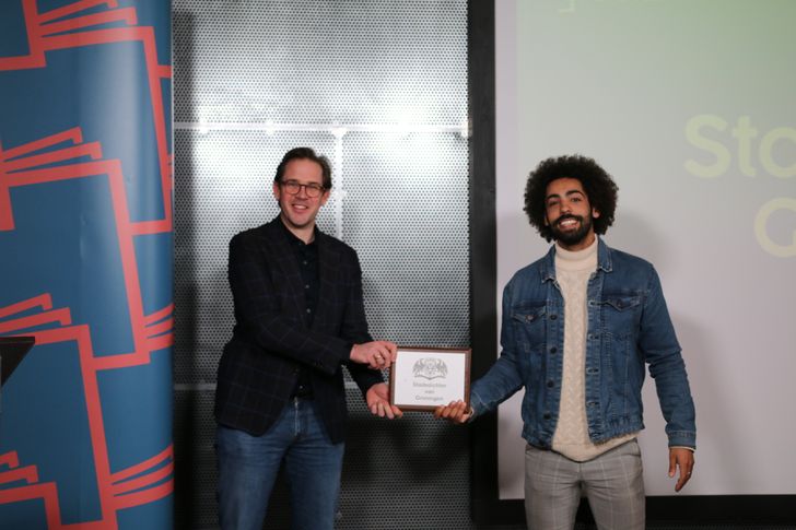 Paul de Rook, wethouder cultuur van de gemeente Groningen, maakte afgelopen vrijdag bekend dat Myron Hamming zich de komende twee jaar stadsdichter van Groningen mag noemen. De Rook is blij met de winnaar: ‘Hij kan met verschillende genres uit de voeten en hij heeft de capaciteiten waarmee hij de inwoners van onze gemeente kan aanspreken’.