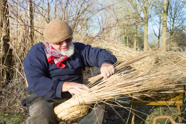 Geconcentreerd ontfermt korfvlechter en imker Rob Triest (59) zich over een gevlochten spiraalwerk van roggestro en buntgras. Om hem heen staan ambachtelijk gemaakte manden, schalen en korven, bundels stro en antieke gereedschappen. Met zijn authentieke boerenkleding en karakteristieke, witte baard lijkt Rob zo weggelopen uit een middeleeuws tafereel, ware het niet dat hij een moderne smartwatch om zijn pols draagt. De screensaver vertoont een bijenkorf, dát wel. ‘Handig, als ik aan het imkeren of korfvlechten ben, heb ik mijn handen niet vrij om de telefoon te pakken,’ legt hij lachend uit.