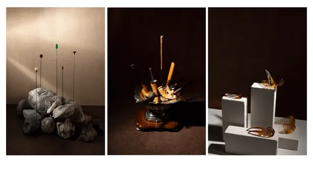 Heleen Haijtema liet zich inspireren door de collectie van het MOW. Oude, persoonlijke dingen die iets tonen van een thuis dat we inmiddels niet meer (her)kennen. Losgezongen van hun oorspronkelijke gebruik, krijgen de objecten bijna mythische proporties. Waar kijken we eigenlijk naar? Tegelijkertijd zie je sporen van de oorspronkelijke eigenaar, in bijvoorbeeld reparaties of slijtplekken.