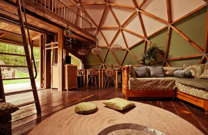 Na een aantal jaar af en aan gebouwd te hebben staan er nu vijf domes, ieder geschikt voor maximaal zes personen, op het terrein van BuitenLand. ‘Ze staan bij elkaar op een afgezonderd veldje en vormen samen een klein dorp: Domecilië, afgeleid van domicilie, oftewel ‘verblijfplaats.’’ Niet alleen de vorm – de koepel die ook open kan zodat je zicht hebt op de sterrenhemel – van de domes is uniek, maar ook het duurzame karakter maakt de huisjes in alle opzichten bijzonder. De domes zijn namelijk helemaal zelfgemaakt en bestaan uit natuurlijke en gerecyclede materialen: zo is de vloer opgetrokken van oude reclameborden!’ Hierdoor is geen enkele dome hetzelfde en zijn zelfs de stijlen binnenin helemaal verschillend: ieder huisje heeft een eigen thema dat naar een ander deel van de wereld verwijst, en dat maakt het vakantiegevoel al helemaal compleet. Tel daar de sfeervolle pelletkachel, het grote kampvuur, de compleet ingerichte buitenkeuken en het eindeloze uitzicht op de sterren bij op en het grote genieten kan bij het Drentse Domecilië écht beginnen.