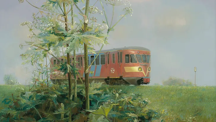 Slochteren: De Blauwe Engel, een iconische dieseltrein van de NS met een opvallende blauwe kleur en twee vleugels aan de voorkant. Hij is uit het landschap verdwenen, maar kunstschilder Rein Pol vereeuwigde ‘m meermaals op het doek. Om de karakteristieke landschappen met de trein werd hij vooral bekend, maar zijn oeuvre is met stillevens en schilderingen van de natuur en (zelf)portretten erg gevarieerd. Deze winter bewonder je het werk van Rein Pol bij de Fraeylemaborg, zowel in het Koethuis als de borg zelf.