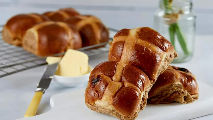 Hot cross buns zijn heerlijke rozijnenbroodjes uit Engeland die traditiegetrouw rond Pasen gegeten worden. Ook in Nederland worden deze lekkere zoete broodjes steeds populairder. Probeer ze zelf ook: wij hebben hier het recept voor je.