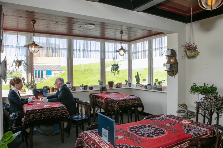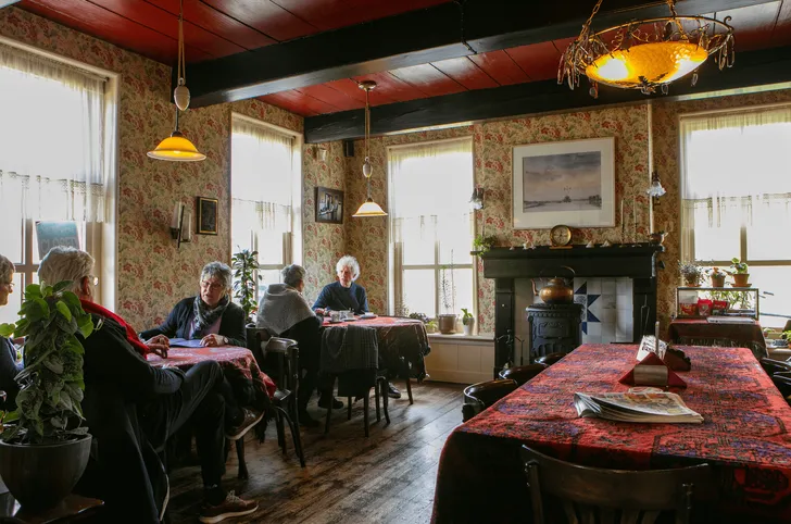 ‘Het begín van de wereld’, zei mijn opa dan altijd,’ zegt Tessa Slager, de huidige eigenares van ‘t Zielhoes. Zo dapper als haar opa Siert is ze niet, hoor. ‘Het kan hier flink te keer gaan. We zijn wel wat gewend, maar bij de hevige winterstorm Eunice was het heel erg. Ons huis bewoog zelfs. Ik ben even op de dijk geweest, maar gauw weer teruggegaan. Het waaide me íets te hard,’ lacht ze. Ze runt ’t Zielhoes met haar man Safet Alimov. Samen wonen ze met hun zevenjarige dochter boven het café, net als haar eigen ouders en grootouders destijds.
