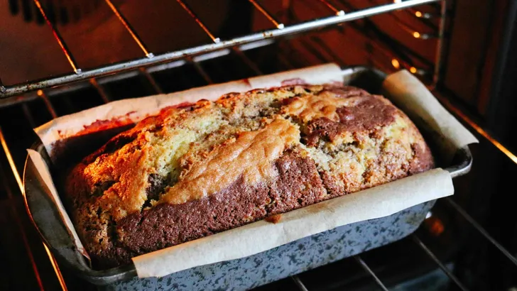 - Laat de cake 10 minuten rusten en haal hem dan uit het cakeblik om verder af te koelen.