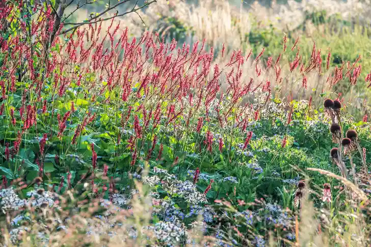 We zijn al voor zonsopgang op de plek van bestemming. Het is er nog heerlijk stil; we hebben de tuin helemaal voor onszelf tot over een paar uur gids Rixt van Gosliga komt om ons rond te leiden.