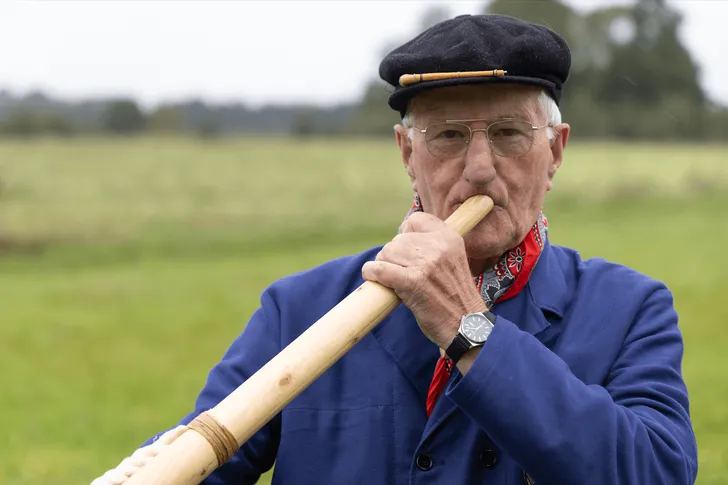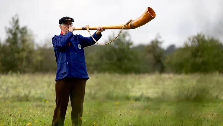 Het is een bijzondere herfstdag in het Groningse dorp Westerwolde: in een grote boerenschuur komen straks de Giezelbaargbloazers voor het eerst weer bij elkaar om te oefenen. Er brandt één lampje, op de achtergrond staan twee bewegingloze tractors in het schemerdonker, aan het plafond hangt een Groningse vlag. Blazer Jan Bossen (75) loopt naar een hoek van de schuur en pakt zijn instrument: een lange houten hoorn die op het eind omhoog krult.