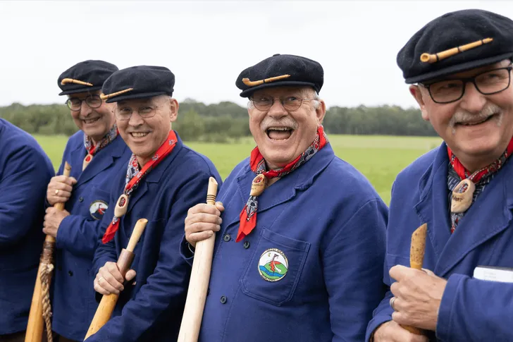 ‘Die zei: ga gerust je gang,’ zegt Jan. ‘Want in het hele Saksische gebied, van Midden-Duitsland naar (noord)oostelijk Nederland, werd op midwinterhoorns geblazen. Dus óók in Westerwolde.’ De Giezelbaargbloazers – vernoemd naar de Geselberg in Veele – kregen les van een gerenommeerde Twentse midwinterhoornblazer en met leden zoals Jan kunnen ze nu zelf het verhaal verder vertellen.