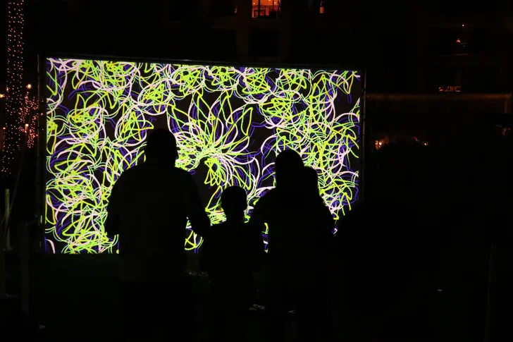 Deze kunstwerken kun je niet alleen bewonderen, maar ook zelf mee aan de slag gaan. Het werk Sym van het Nederlandse kunstenaarscollectief AlexP is een "lightpaint-installatie", waarbij je over het digitale canvas kunt 'schilderen' met het licht van je telefoon of zaklamp. Er ontstaan dan nieuwe vormen in heldere kleuren: zo draag je als toeschouwer bij aan dit kunstwerk.