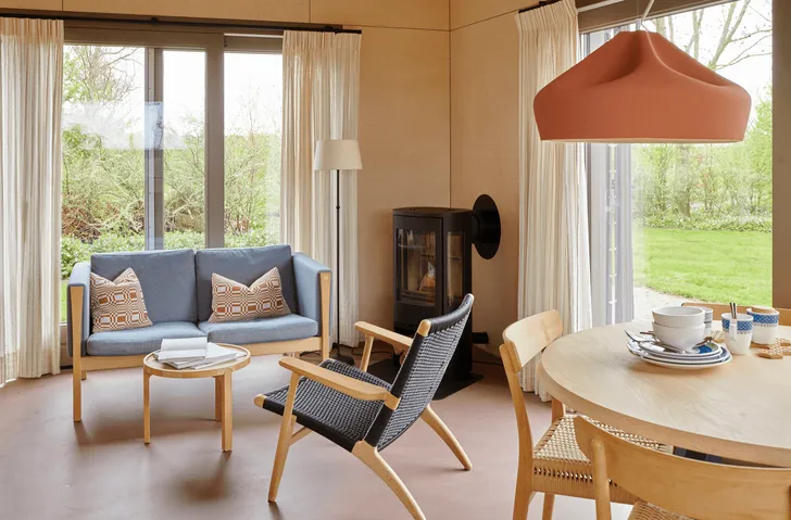 Niet alleen de waterrijke omgeving helpt daarbij, maar de appartementen zelf zijn ook een oase van rust: puur en natuurlijk, met rustige kleuren en natuurlijke materialen. Je hoeft hier niets, maar er is genoeg te zien en doen. Naast rust vind je er ook levendigheid: ‘Er is gezellige drukte, maar nooit veel lawaai. Je zit hier ook vlak bij het veenweidegebied, dus in het voorjaar kun je de grutto goed horen. Ook zie je hier andere weide- en watervogels waar we onze appartementen naar hebben vernoemd: de kievit, meerkoet, fuut en scholekster. Er is altijd wel wat te zien.’
