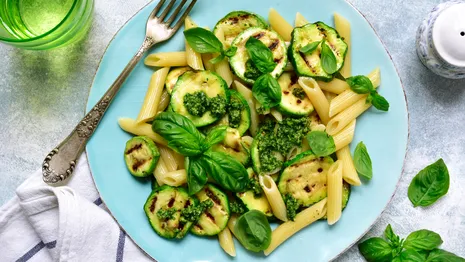 Zo maak je een pastasalade met gerookte kip en gegrilde courgette: