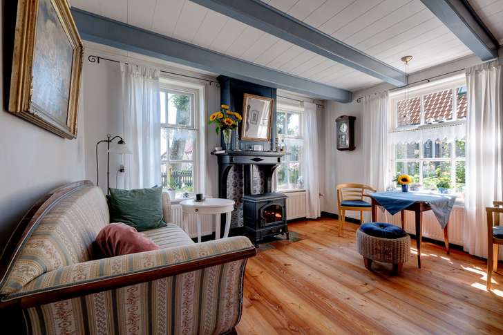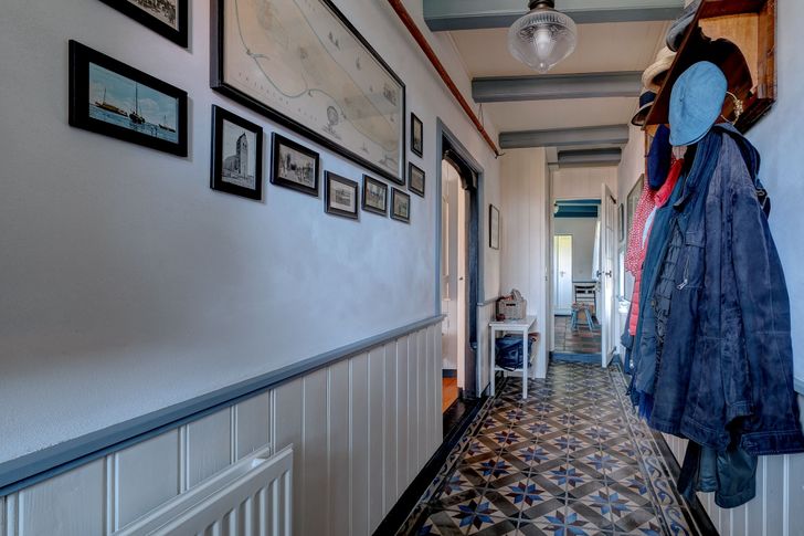 Balkenplafonds, antieke tegels en oude schilderijtjes aan de muur – wie de stuurmanswoning binnenstapt, stapt ook een beetje terug in de tijd. Welk detail vind je het leukst: de oude kaart van het Friese Wad, of de haakstok aan het plafond?