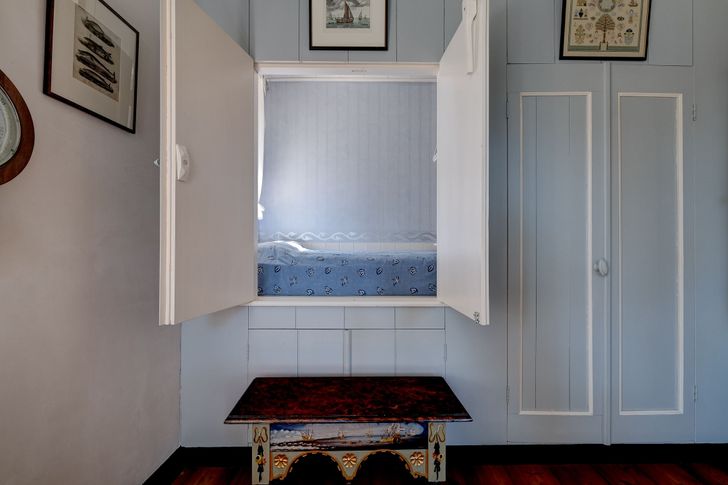 Vooral de bedstedes in de woonkamer vinden we verrassend. Die zijn namelijk mooi bewaard gebleven, en je kunt er ook nog gewoon in slapen. Dan denk je vast: 'Dat is donker en krap overnachten!', maar niets is minder waar. Je kunt er languit liggen en er zit een raam in dat voor wat licht zorgt. Het gevoel van vroeger dus, maar met nog een beetje comfort van nu. Ben je benieuwd naar hoe de rest van deze stuurmanswoning eruit ziet? Klik dan hier.