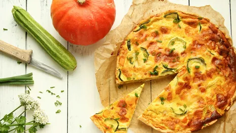 7. Bak de quiche in ongeveer 45 minuten gaar in de oven.