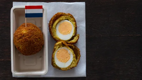 De aaierbal zou een origineel recept kunnen zijn, maar het is ook denkbaar dat het op iets anders is gebaseerd. Neem bijvoorbeeld de Scotch egg: een snack die volgens sommige bronnen al in 1738 in Londen is ontstaan. Dit gerecht lijkt veel op de eierbal, alleen gebruik je voor een Scotch egg varkensvlees in plaats van kerrieragout. Ook in Indonesië bestaat een soortgelijke snack, waar een gekookt ei in een kruidige ragout wordt gewikkeld. Hoe deze recepten in een Groningse snackbar terecht zijn gekomen? Dat zal misschien met het Nederlandse handelsverleden te maken hebben.