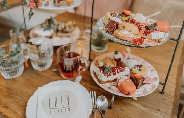 Midden in het historische hart van Workum ligt restaurant Loev, gevestigd in een prachtig oud pand. De warme Balinese inrichting geeft een ontspannen en gezellige sfeer. Hier kun je niet alleen lekker eten, maar ook van een heerlijke high tea genieten. Met zelfgemaakte gebakjes, lekkernijen en vers belegde broodjes ga je zeker weten voldaan naar huis.