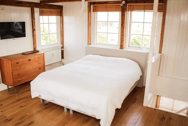 Op de vide, een verdieping hoger, staat onder het schuine dak een heerlijk tweepersoonsbed voor je klaar. De keuken is compleet genoeg om zelf een lekker ontbijtje te maken, maar je kunt dit ook bij de eigenaar reserveren. Die bezorgt het dan vers gemaakt in een grote picknickmand aan de deur.