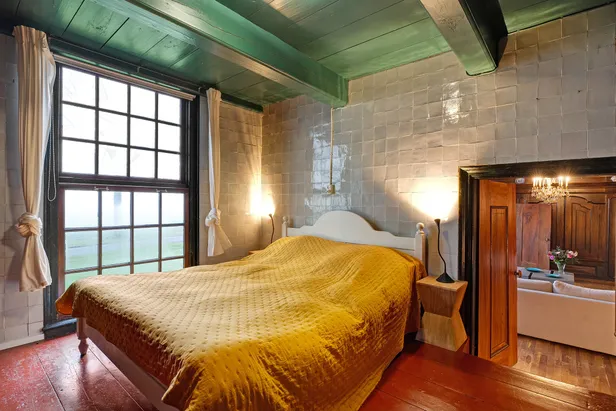 Boven de kelder bevindt zich de zogenoemde opkamer, die nu gebruikt wordt als slaapkamer. Vooral de rode houten vloer en de mooie tegeltjes aan de wand vallen in deze ruimte op. En wakker worden met uitzicht over de Drentse velden? Wij zien het wel zitten! Via deze link bekijk je alvast meer foto's van het huis.