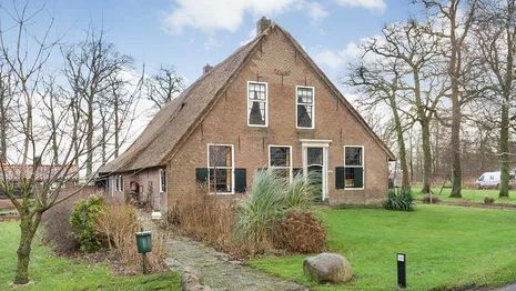 Wanneer je de dorpskern van Ruinerwold uitrijdt, een van de sfeervolle boerenlanen in, duikt deze boerderij ineens op tussen de groene landerijen. Dit is er zo een uit de Drentse droom, met een rieten kap en luiken aan het voorhuis. 'Wat moet het heerlijk zijn om hier te wonen,' denk je bij jezelf, en je hebt gelijk. Stad Meppel ligt om de hoek, en tóch woon je hier midden in het groene landschap.