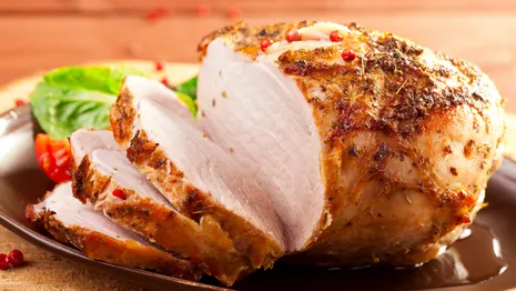- Haal de beenham uit de airfryer, laat deze een paar minuten rusten en snijd 'm vervolgens in dunne plakken.