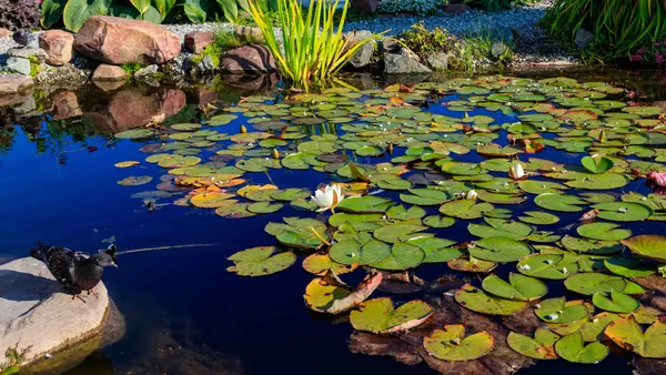 Waterplanten kunnen vanaf eind april weer geplant worden. Zet moeras- en zuurstofplanten stevig vast in mandjes of substraat en veranker drijfplanten met keien in plaats van loodbandjes: dat is beter voor de natuur én het oog. Vergeet niet oude plantenresten terug te snoeien tot zo’n 15 centimeter onder het wateroppervlak. Verjong de planten waar nodig door jonge scheuten opnieuw uit te zetten.