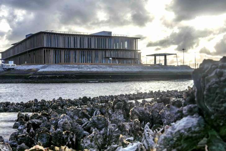 Het was de Deense architecte Dorte Mandrup die tekende voor een eigenzinnige vormgeving, met oog voor het onderscheidend en historische belang van dit landschap. Die aandacht zie je in alles terug. Onder haar handen kreeg het Werelderfgoedcentrum Waddenzee ’n Scandinavische twist die zich onder meer vertaalde in de jas van hout, even sober als stoer. Meerpalen uit de Duitse havenstad Kiel kregen hier een tweede leven; vertimmerd tot het robuuste onderstel van de “Waddenmaquettetafel”, en verwerkt tot de beeldbepalende lamellen die de volledige glazen gevel bekleden.