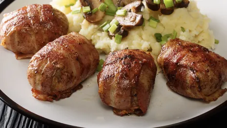 - Serveer de slavinken bijvoorbeeld met wat aardappelpuree en seizoensgroenten. Eet smakelijk!
