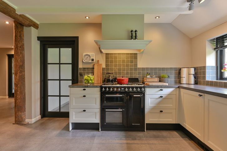 Van buiten klassiek, van binnen licht en modern: in deze boerderij gaan oud en nieuw goed samen. Neem bijvoorbeeld de landelijke keuken, waar houten balken overgaan in strakke muren en moderne vloeren. Ben jij fan van deze combinatie?