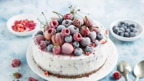 - Serveer direct of bewaar de taart in de vriezer tot gebruik.