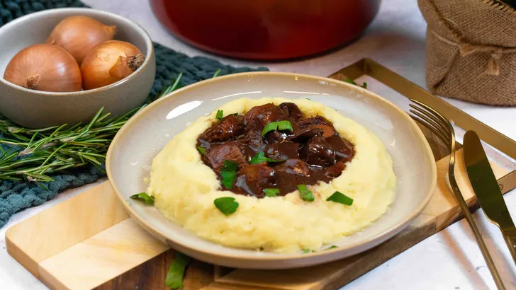 De Franse chef Willy Berton opende in 2016 Le Vegan Gorilla, het eerste volledig veganistische restaurant dat zowel de titel Maître Restaurateur als een Bib Gourmand van de Michelin Gids wist te bemachtigen. Voor zijn plantaardige variant op boeuf bourguignon gebruikt hij de steakpuntjes van Planted, een merk dat vleesalternatieven van natuurlijke ingrediënten maakt – zonder toevoegingen. Het resultaat? Een stoof die zoveel diepte en rijkdom heeft dat je haast niet gelooft dat er geen vlees aan te pas komt.