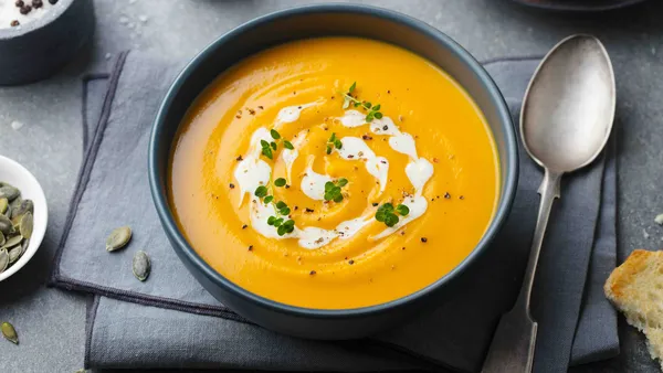 - Schep de soep in kommen en verdeel de gekaramelliseerde ui eroverheen. Maak het af met geitenkaasbolletjes.